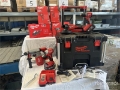 1pc tile cutter, 1pc grinder, 1pc impact driver, 1pc compact drill driver, 3pcs batteries, 1pc battery charger, 1pc trolley