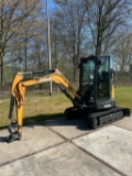 Machine uitgevoerd met sloop-/sorteerfunctie, proportioneel bediend in de joysticks, extra contragewicht.