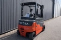 The Toyota Traigo 80 is a powerful 4-wheel electric forklift ideal for demanding industrial applications. With a 3,500 kg capacity, 4.7 m Triplex mast, and robust non-marking tyres, it’s built for both indoor and outdoor use. Supplied without battery to allow full flexibility in power system selection. Closed cabin, CE certified, and equipped with modern features for optimal performance and comfort.