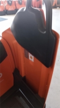 Plattform Kühlhaus, manuell hochklappbar; feste Seitenschutzwände mit kleiner Deichsel; Servolenkung, 8 km/h Version; Gleitschienen inkl. Kletterrolle; Gabelrollen Einfach, Stützrad doppelt; PIN-Code; Batterie Schnellverriegelung; blaues Warnlicht nach hinten gerichtet