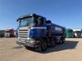 SCANIA R500 jednostranný vyklápač 8x4 20m3 r.v. 07/2008, 626 570 km, EURO 4, 368 kW, 15607 cm3, manuál, motorová brzda, prvé dve nápravy natáčacie, klimatizácia, chladnička, váha: 13 460 kg, celková hmotnosť: 38 000 kg, rozmery ložnej plochy: Š- 2,34m, D- 5,56m V-1,54m, stav pneu: 20%, český TP, CENA=41.900 EUR+DPH