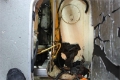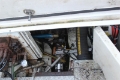 Den fremstår som komplett, men med synlig bruksslitasje og misfarging på dekk og overbygg, samt smuss og overflaterust i maskinrom og tekniske rom. Thruster- og hydraulikkanlegg er installert og opplyst å fungere