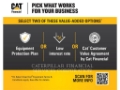 Protection PICK WHAT WORKS! 12 months/1,00-hour Equipment Protection Plan is 1 of 3 choices available at no additional cost! Pick 2 and maximize your value. Ask your local Cat dealer for full offer details, machine eligibility, terms and conditions.