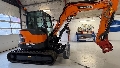 Develon DX55R-7 fra 2023 med kun 27 timer! Stort set ikke brugt og Monteret med hydraulisk tilt hurtigskifte! Kvalitets maskine som tidligere er kendt under Doosan navnet! Udstyret med bla: Tilt med hydraulisk skifte, Dozerblad, Ekstra vægtklods, LED lys, Aircondition, Touch skærm og radio!