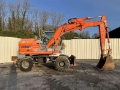 Cette pelle sur pneus de la marque FIAT KOBELCO est le modèle E145W de 2004.