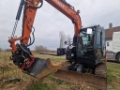 Very good and well-maintained Hitachi ZX85US-6 for sale. The machine is equipped with Rototilt R3, grading bucket, narrow bucket, quick coupler, dozer blade, and loose rubber pads.