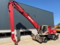 This Sennebogen 830M (Dutch machine) is equipped with a 6 cilinder water cooled turbo charged Deutz BF 6M 1013 EC (150kW) diesel engine. The engine has been overhauled recently and received a new slew ring. The service meter not working. Moreover it has a drop nose stick, it’s prepared for a generator, high rise cabine, full rubber tires, 4 outriggers, airco, radio etc..