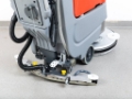 The machine's design makes it highly maneuverable. The small turning radius allows for operation even in narrow passages and alleys. The parabolic squeegee beam ensures precise suction of the solution from the cleaned surface.