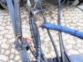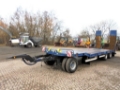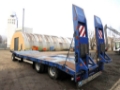 3 axle drawbar low loading trailer. Cargo space approx. 8.700 (2.200+6.500) x 2.500 mm, foldable extensions up to 3.000 mm, caution signs, 18 lashing points. Hydr. loading ramps approx. 2.500 x 700 mm slidable. BPW axles, anti-lock brakes (ABS), steel suspension. Tyres 9.5R17.5. Towing eye 50 mm, 2 lines air (Duomatik), 2 lines hydraulic, 24 V. Loading height approx. 910 mm. 3 tool boxes. Colour blue. GVW 30.000 kg, payload 23.600 kg. Good condition.