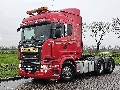 Number of axles: 3, Configuration: 6x4, Own weight: 10238 kg, Gross vehicle weight: 29500 kg, Total fuel capacity: 710 litre, Fifth wheel height: 122 cm, fifth-wheel: Fixed, Diff. locks: 2, Cabin type: Sleeping cabin, Cruise control, Tacho, Digital tachograph, Airconditioning, Parking Airco, Parking heater, Electric windows, Electric mirrors, Radio/cassette, GPS navigation, Color: Red, Heated mirrors, Lighting type: Halogen lamps, Laneassist, Climatecontrol, Seat heating, Bluetooth, Flashing lights, Engine capacity: 537 Kw (720 Hp), Fuel type: diesel, Euro: 6, Gearbox kind: Opti-cruise, Gearbox make: Scania, Number of Gears: 12, Clutch Pedal, Add. break system, Retarder make: Scania, Power steering, ABS, ASR, Starter battery, Central locking, Seats configuration: 1+1, Seat cover: cloth, Chair adjustment: Manually