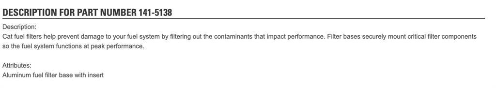 (GOOD USED) Caterpillar 3126 Engine Fuel Filter Base 141-5138 For Sale, Part # 1415138, 141 5138, EXCAVATOR: 312E 312E L 314E CR 314E LCR 316E L 318E L 320E 320E L 320E LN 320E LRR 320E RR 323E LN 323E SA 324E 324E L 324E LN 329E L, Also Fits 3126 3126B 3126E C6.6 C7 C9, Stock # 6149 | Tested & Inspected!